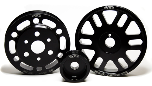 Leichte RiemenscheibenGFB Riemenscheiben bestehen aus einer hochertigen Aluminium-Legierung 6061-T6, die auch in der Luftfahrt verwendet wird. Durch die geringere Masse der GFB Riemenscheiben ist der Spool-up beim Beschleunigen merklich schneller. Dieser Effekt ist ähnlich wie bei leichten Schwungscheiben, wodurch sich das Fahrzeug deutlich agiler anfühlt und besser am Gas hängt. Viele unserer Riemenscheiben sind kleiner als die Originalen ("underdrive"), was dazu führt, dass die am Riemen befindlichen Aggregate weniger angetrieben werden und so auch weniger Kraft aufgewendet werden muss, was widerum den Spool-up verbessert. Gleichzeitig ist aber die Funktion der Aggregate keineswegs eingeschränkt - alle "underdrive" Riemenscheiben wurde ausgiebigst getestet!
